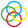 Blue, gold, green, and red interlocking rings symbolic of the four ways of marital intimacy: spiritual, intellectual, emotional, and physical.
